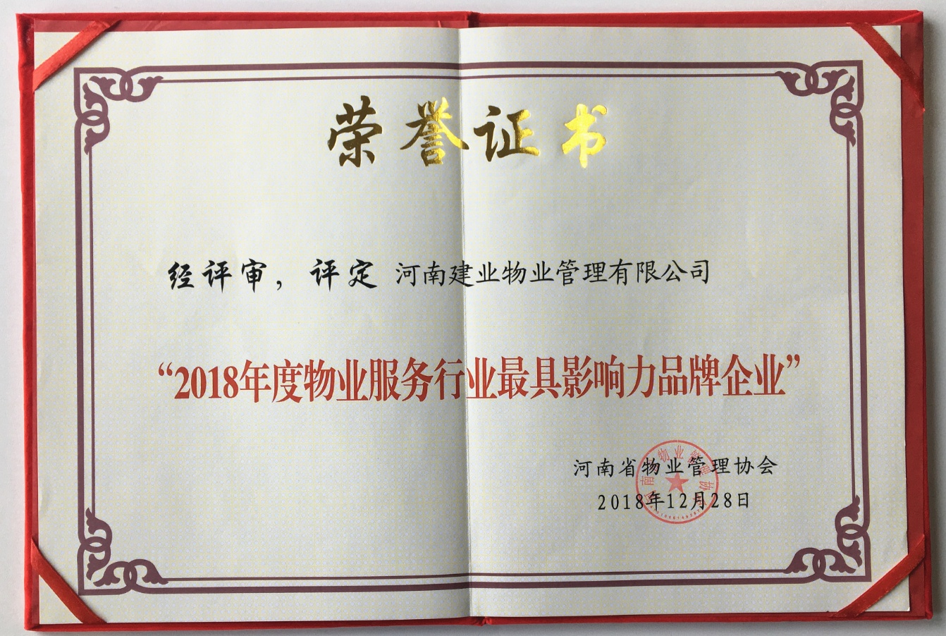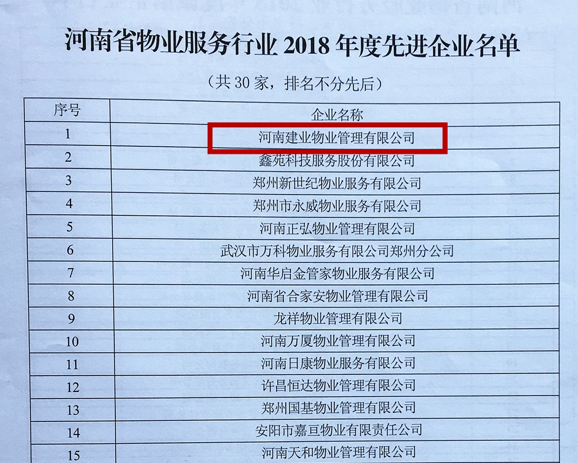 為弘揚河南省物業(yè)服務(wù)行業(yè)發(fā)展中的正能量和新風尚,樹立行業(yè)典型和標桿,本次會議現(xiàn)場宣讀并頒發(fā)了河南省物業(yè)服務(wù)行業(yè)先進獎項。建業(yè)物業(yè)喜獲“河南省物業(yè)服務(wù)行業(yè)2018年度先進企業(yè)”和“2018年度最具影響力品牌宣傳企業(yè)”稱號;建業(yè)物業(yè)運營管理部吳陽榮獲“2018年度河南省物業(yè)服務(wù)行業(yè)優(yōu)秀通訊員”稱號。作為中原人居品質(zhì)服務(wù)引領(lǐng)者,建業(yè)物業(yè)的行業(yè)地位備受認可,業(yè)界口碑持續(xù)攀升,品牌價值不斷凸顯。
