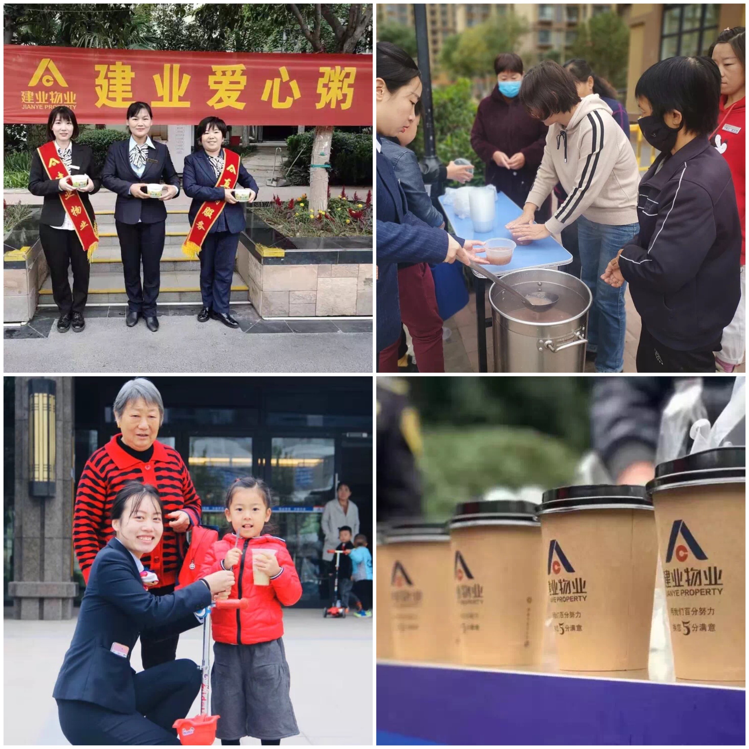 每年,從秋季開始,建業(yè)物業(yè)全省聯(lián)動(dòng),各個(gè)小區(qū)開展為業(yè)主送暖心茶、養(yǎng)生粥的活動(dòng)。在建業(yè)物業(yè)社區(qū)門口,物業(yè)工作人員早早地守在晨風(fēng)中,親手為業(yè)主送上一杯暖心茶、養(yǎng)生粥,為業(yè)主送去溫暖。此項(xiàng)活動(dòng)被廣大業(yè)主津津樂道,他們紛紛稱贊建業(yè)物業(yè)的服務(wù)走胃更走心。