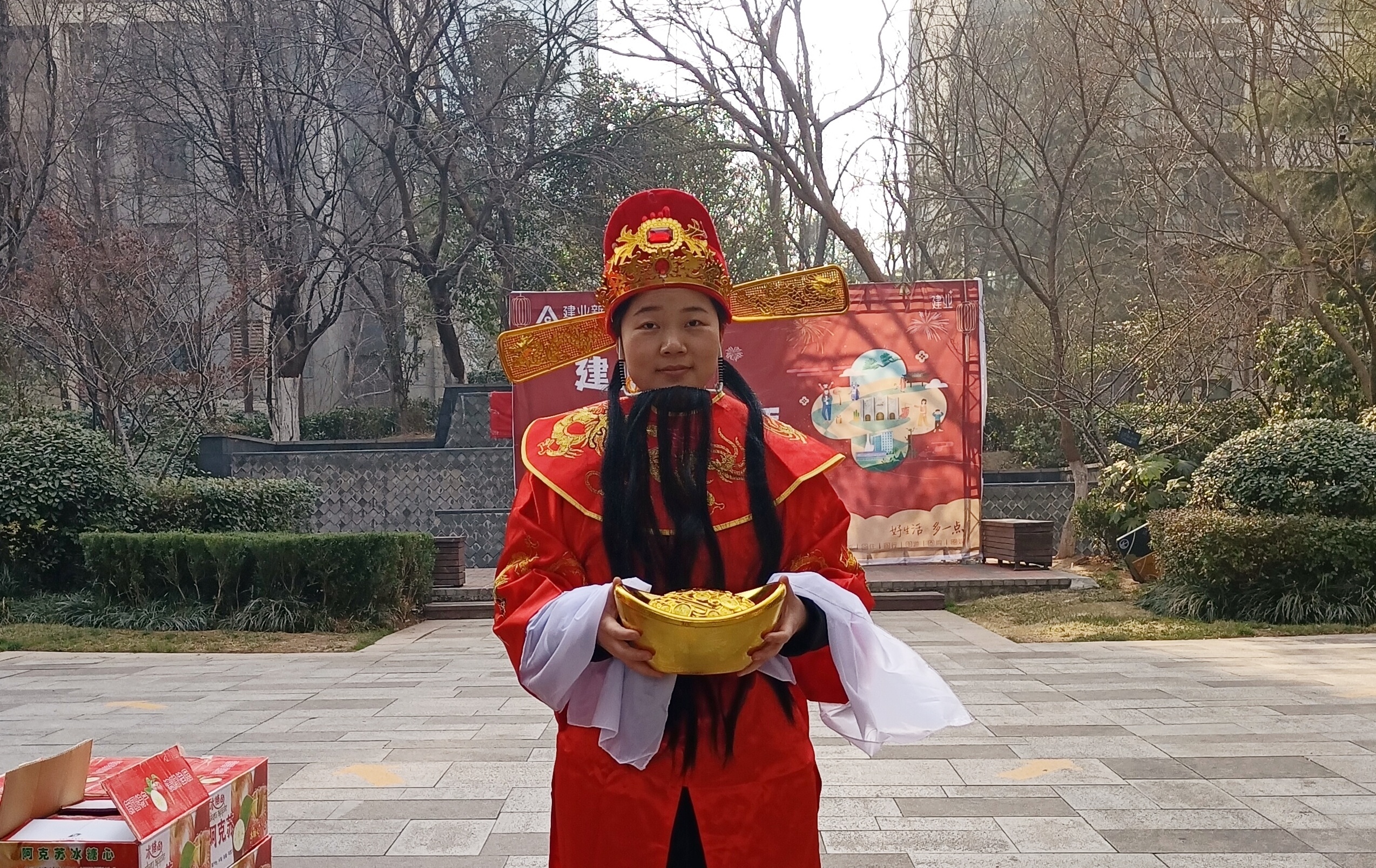 洛陽·建業(yè)世紀(jì)華陽C區(qū)管家李聰雅:今年大年三十和初一,我留守在工作崗位上幫業(yè)主貼春聯(lián)、發(fā)拜年信息、組織新年活動、和同事一起扮財神給業(yè)主拜年、派發(fā)糖果和小禮物……有趣的是,很多業(yè)主看到我們物業(yè)人在扮財神,紛紛要與我們合影,想要一起沾點(diǎn)喜氣,看到業(yè)主開心的模樣,我也感到很開心。雖然最重要的日子不能陪伴家人,但堅守崗位依然可以喜氣洋洋過大年!