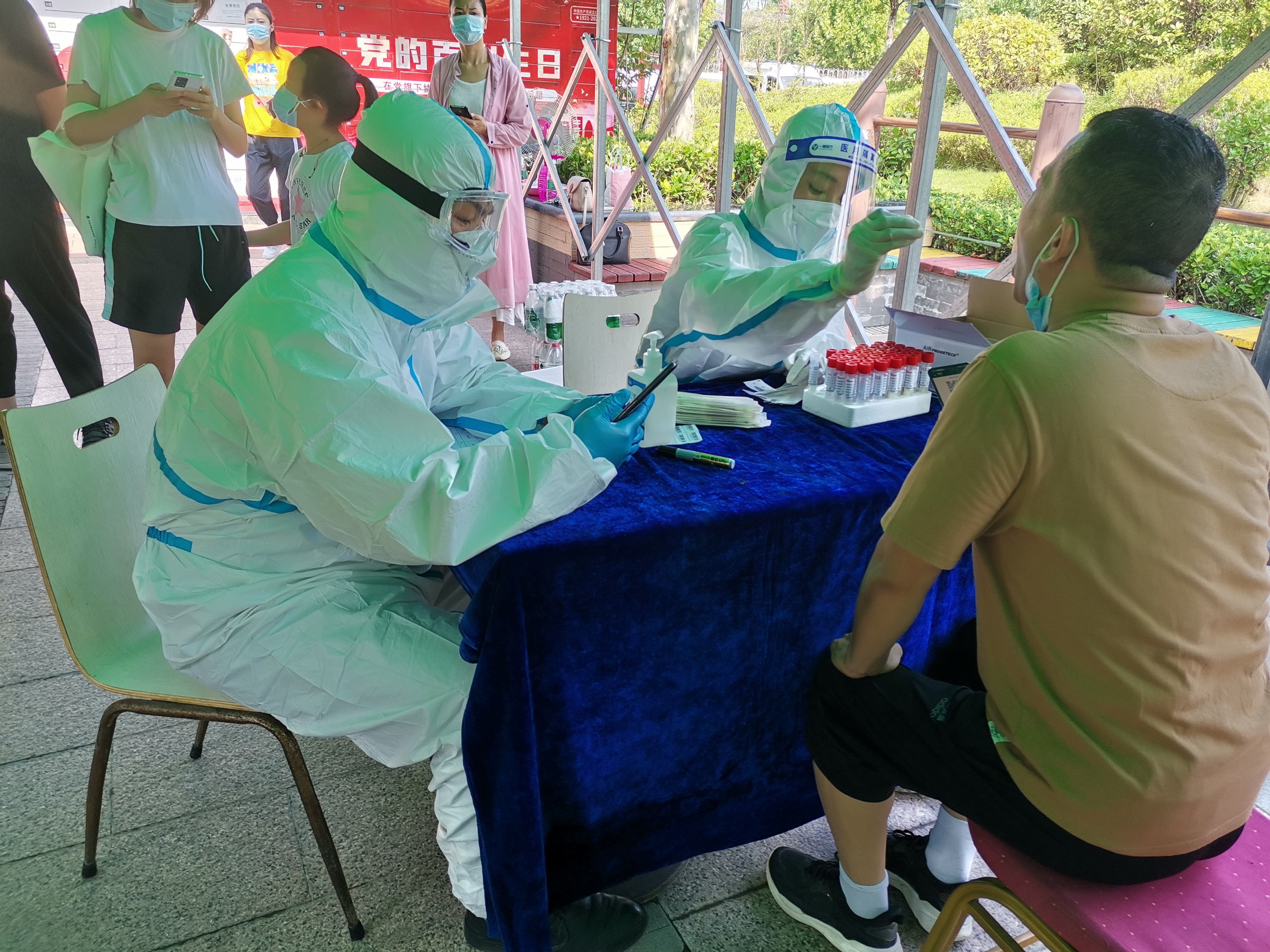 正陽(yáng)·建業(yè)城環(huán)境經(jīng)理鄭文偉協(xié)助業(yè)主做核酸檢測(cè)