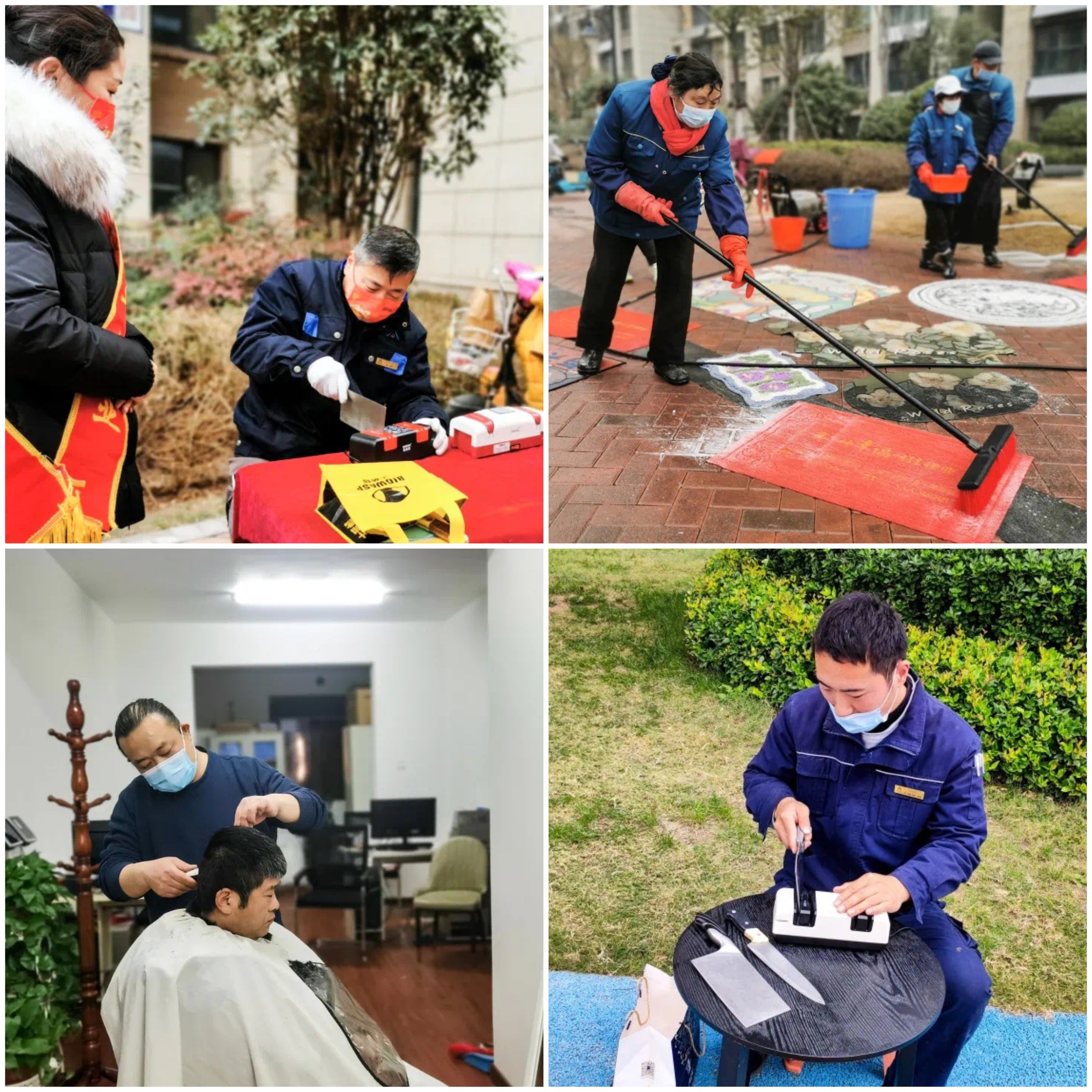 掃房子、貼窗花、祭灶,臘月的民俗活動(dòng)在各個(gè)小區(qū)上演。建業(yè)物業(yè)如期開(kāi)展星級(jí)便民服務(wù)活動(dòng),磨刀、洗車、洗地墊、愛(ài)心理發(fā)、義診……守護(hù)傳統(tǒng)文化,守護(hù)業(yè)主的豐年。