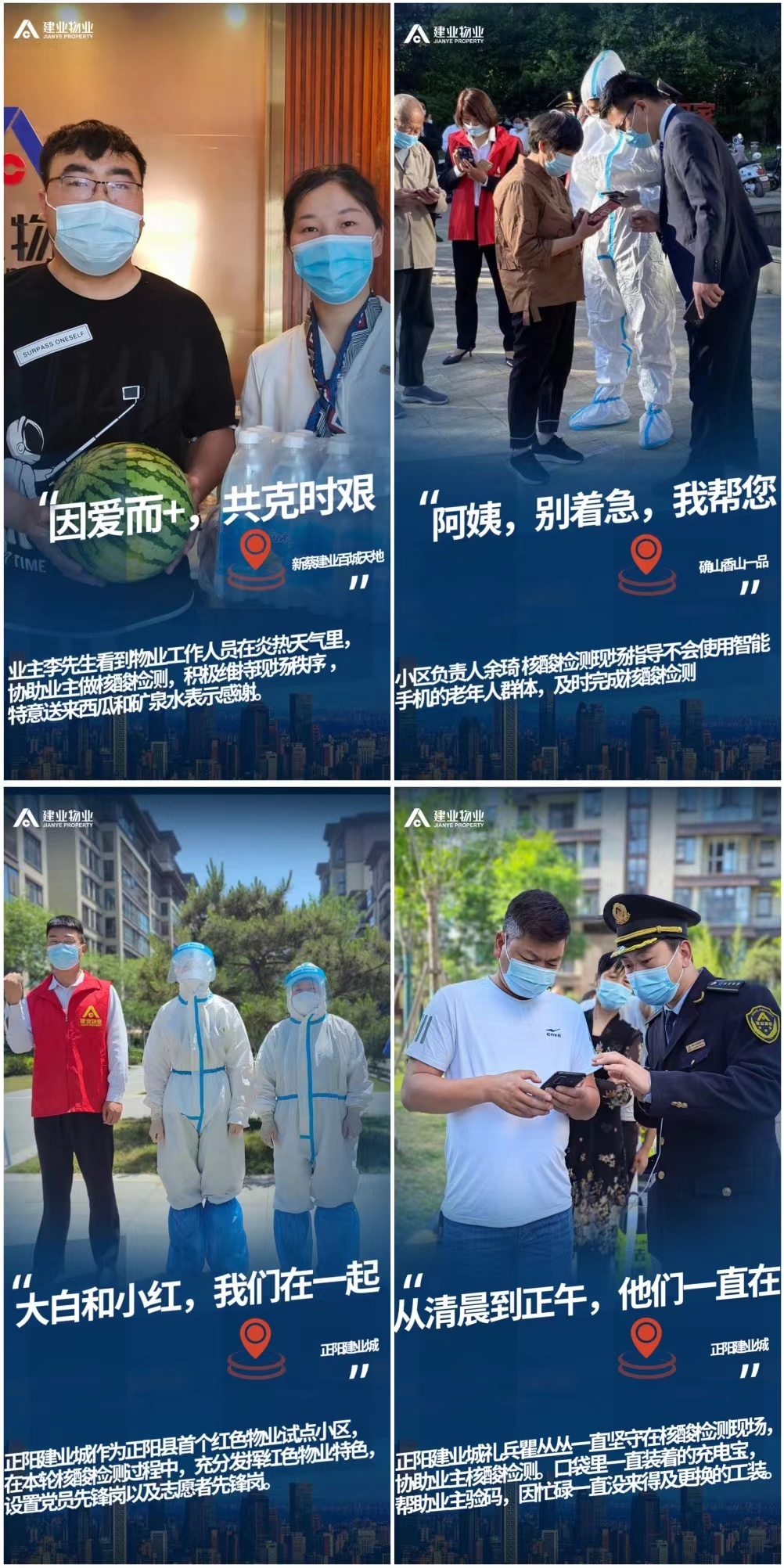 建業(yè)物業(yè)人聯(lián)動著小區(qū)與外界,在無數(shù)個困難面前,他們都不曾退縮。特殊人群的核酸檢測,物業(yè)管家主動協(xié)同醫(yī)護人員開展,防護雖少,但勇氣足夠多。