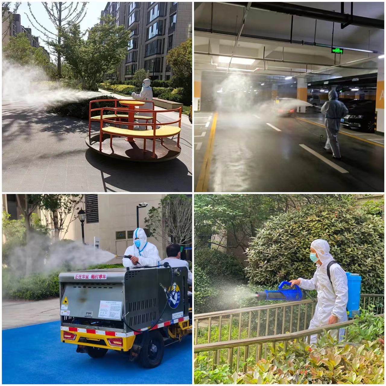 昨日,收到「鄭州發(fā)布」的防疫通告后,鄭州市各建業(yè)物業(yè)小區(qū)迅速反應(yīng)。首先開展一輪高強度全面消殺,從園區(qū)到樓宇,不放過任何一處地方。