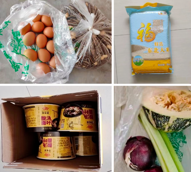 很快,4號(hào)樓的業(yè)主們開(kāi)始自發(fā)互助:“我家有兩個(gè)洋蔥,一顆芹菜,半個(gè)南瓜,裝在袋里放在家門(mén)口了,有需要的過(guò)來(lái)拿;我家有多的雞蛋和瓜子,放在家門(mén)口,有需要的鄰居過(guò)來(lái)拿;我家有大米,有需要的過(guò)來(lái)拿……”兒媳婦也將自己家中不多的幾盒酸湯面葉分享了出來(lái)。