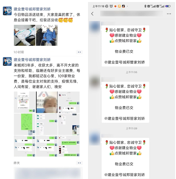 物業(yè)人的辛苦和付出,都被業(yè)主們看在眼里,暖在心中。業(yè)主們紛紛主動繳納物業(yè)費用表示支持,有的業(yè)主還在群里發(fā)起了繳費接龍,短短一天時間,就有200多戶業(yè)主繳納了物業(yè)費。