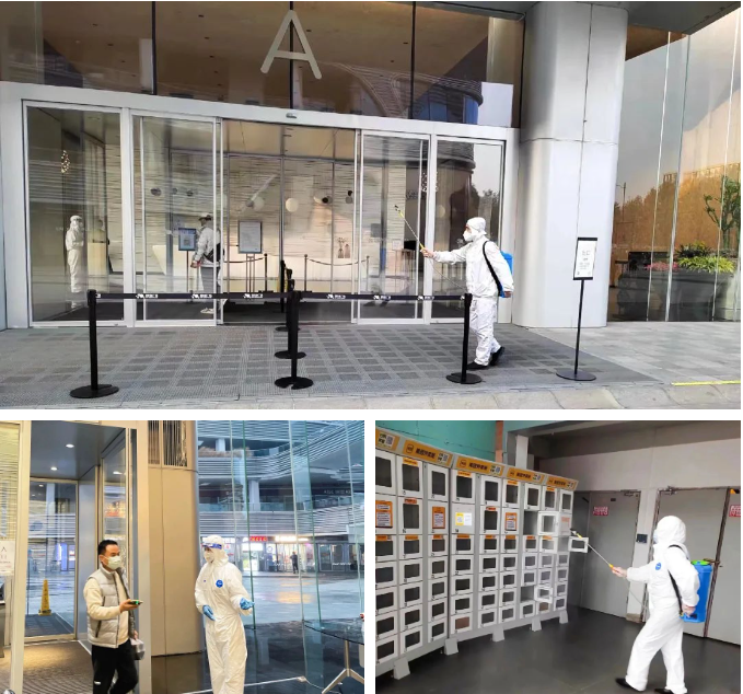 在明確復(fù)工時(shí)間后,建業(yè)物業(yè)迅速組織工作人員,對(duì)公共區(qū)域進(jìn)行全面消殺,并對(duì)電梯、客戶公司門把手、垃圾桶等區(qū)域進(jìn)行重點(diǎn)消毒。設(shè)置體溫監(jiān)測儀、更新場所碼,為即將到來的復(fù)工做好充分準(zhǔn)備。