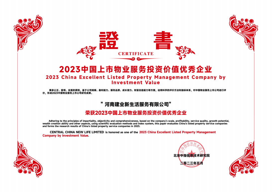 自2020年上市以來,建業(yè)新生活不斷拓展服務(wù)邊界,憑借持續(xù)穩(wěn)健的發(fā)展和卓越優(yōu)異的成績,成為資本市場物企領(lǐng)域的佼佼者。本次獲得的榮譽(yù)也展現(xiàn)了行業(yè)和資本市場對建業(yè)新生活的肯定和支持。