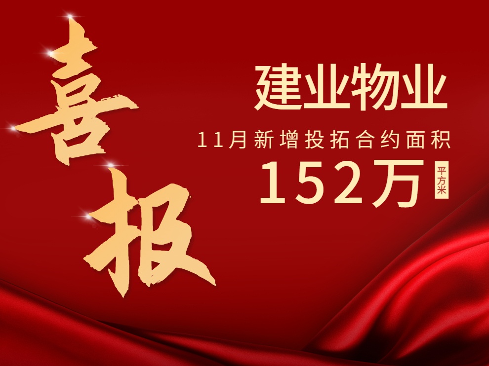 在剛剛過去的11月份,建業(yè)物業(yè)投資外拓共簽約8個項目,新增合約面積151.65萬㎡