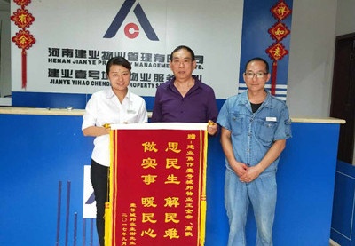 歲末,建業(yè)物業(yè)人在辭舊迎新的氛圍中,用積極熱情的工作態(tài)度和匠心服務(wù),為業(yè)主帶來許多溫暖和感動。十二月,我們收到拾金不昧、技術(shù)高超、服務(wù)熱情、助人為樂等好人好事共95例,其中錦旗48面,感謝信30封,致電感謝28起。 鏡頭一: 12月1日,安陽·桂花居維修師傅郭強(qiáng)在接到熱力公司王保仲師傅反映10樓漏水的求助電話后,立刻去樓層里挨家挨戶排查、尋找漏水點(diǎn)。歷時(shí)兩天,郭師傅終于在某業(yè)主家中一個(gè)不起眼的柜子里找到了漏水口,并及時(shí)幫業(yè)主改造了暖氣管道。 而就在此時(shí),上了年紀(jì)的業(yè)主血壓猛然升高,突然一個(gè)趔趄,差一點(diǎn)摔倒在地。郭師傅見狀,趕緊將業(yè)主扶到沙發(fā)上休息,又服侍業(yè)主服下降壓藥,直到業(yè)主病情穩(wěn)定才放心地離開。 12月10日下午,業(yè)主送來