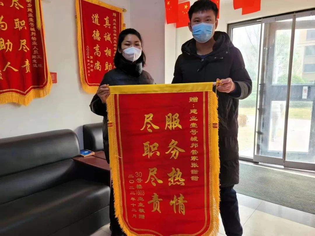 “鼎力相助,有求必應(yīng)” “排憂解難,情系業(yè)主” “服務(wù)熱情,盡職盡責” …… 12月8日,剛剛解封不久的新鄉(xiāng)·建業(yè)壹號城邦物業(yè)服務(wù)中心內(nèi),業(yè)主代表們將21面鮮紅的錦旗送給了貼心管家張?zhí)鹛穑瑢λ谝咔榉饪仄陂g的無私奉獻及日常服務(wù)中的盡職盡責表達感謝。 是她的負責,保障了我們特殊時期的安全 在前段時間的疫情管控中,張?zhí)鹛鹚撠煹臉菞潈?nèi)出現(xiàn)了確診病例,按照當時的政策,需要對整個單元進行封控,張?zhí)鹛鸨愠袚鹫麄€樓層的消殺、物資配送等工作。在配送物資時,張?zhí)鹛鸢l(fā)現(xiàn)有的業(yè)主并沒有按照防疫要求足不出戶,便主動勸導業(yè)主進行嚴格的居家隔離,避免病毒進一步擴散。 與此同時,張?zhí)鹛疬€時刻關(guān)注著被感染業(yè)主的健康情況,在被感染