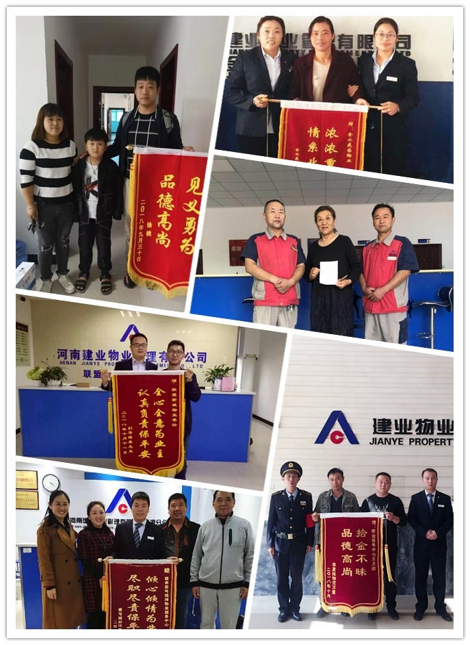 金秋十月,碧空如洗。建業(yè)物業(yè)全體員工不僅持續(xù)地為業(yè)主打造舒適的人居環(huán)境,還積極主動地為業(yè)主提供匠心服務(wù)。本月,我們收到拾金不昧、技術(shù)高超、服務(wù)熱情、助人為樂等好人好事共198例,其中,收到錦旗75面、感謝信80封、致電感謝及其他54起。