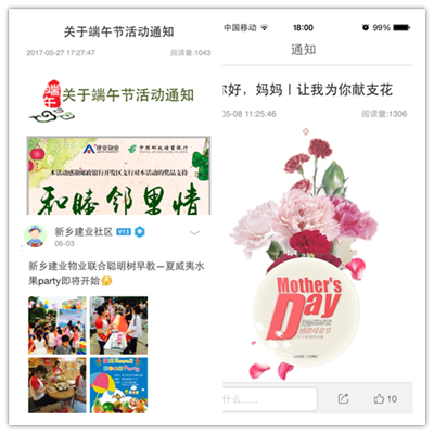 漯河、鄭州、洛陽等分公司將親子運(yùn)動(dòng)會(huì)、鄰里旅行、消夏音樂節(jié)、藝術(shù)團(tuán)義演等活動(dòng)引入社區(qū),倡導(dǎo)業(yè)主以全新理念暢享新型生活方式,感受鄰里共處的曼妙時(shí)光,體驗(yàn)建業(yè)物業(yè)獨(dú)具特色的社區(qū)文化。新鄉(xiāng)、焦作等分公司充分利用建業(yè)一家APP、微信等載體,實(shí)現(xiàn)線上線下的充分互動(dòng),更是贏得了業(yè)主的一致好評,極大的提高了業(yè)主參與度和滿意度。而書法、讀書會(huì)、籃球、太極等等社群組織的組建、運(yùn)營和活躍,亦是本階段的重要成果。