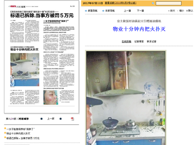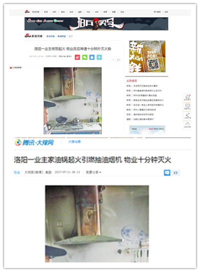 2017年7月6日,洛陽·建業(yè)森林半島一戶居民因操作不當引起家中抽油煙機著火,物業(yè)人員從接到消防主機煙感報警、確認火情、啟動應急預案、到最終撲滅起火點,用時不到10分鐘,避免了一場可能威脅到廣大業(yè)主生命和財產(chǎn)安全的災難。消防主管部門對建業(yè)物業(yè)應對此類突發(fā)事件的處置過程及時、得當給予了高度贊揚。