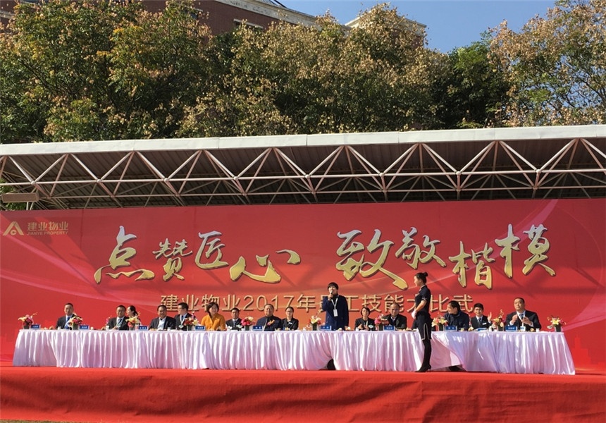10月29日,2017年建業(yè)物業(yè)“點贊匠心、致敬楷?!奔寄艽蟊任浠顒釉卩嵵莩鞘谢▓@外國語中學(xué)隆重舉行。本次活動旨在提升員工專業(yè)技能水平,提高團隊凝聚力,展現(xiàn)物業(yè)服務(wù)品質(zhì)提升成果。活動當(dāng)天,建業(yè)集團董事長胡葆森先生、建業(yè)新生活副總裁張立華先生、建業(yè)新生活副總裁蔡斌先生、建業(yè)新生活副總裁周建慧女士、鄭州市物業(yè)管理協(xié)會秘書長田秀生先生、建業(yè)物業(yè)總經(jīng)理許靜女士蒞臨本次大比武現(xiàn)場。