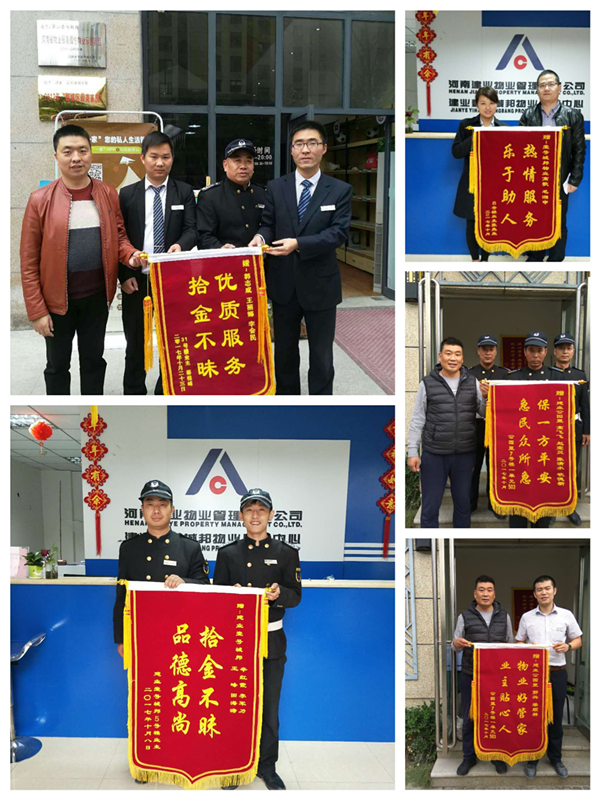 金秋十月,在這象征收獲的季節(jié),建業(yè)物業(yè)全體員工如家人一般貼心守候在業(yè)主的身旁,帶來(lái)了許多溫暖和感動(dòng)。十月,我們收到拾金不昧、技術(shù)高超、服務(wù)熱情、助人為樂(lè)等好人好事共32件,其中錦旗有11面,感謝信有10封,致電感謝有11例。