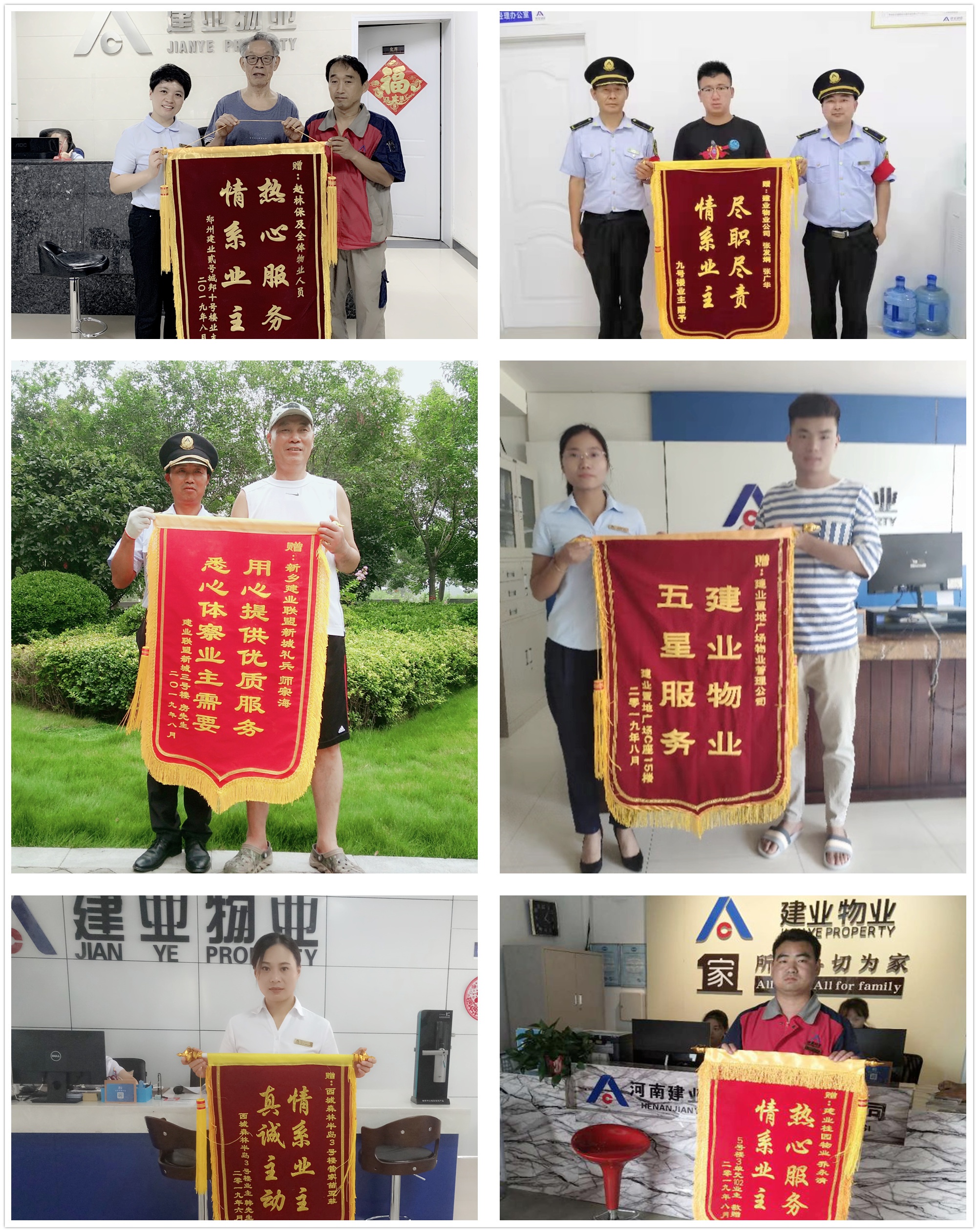 八月,天高云淡,微風(fēng)涼爽宜人。變的是氣溫和時節(jié),不變的是建業(yè)物業(yè)人始終立足崗位,為業(yè)主送上最溫暖的服務(wù)。八月,在全省建業(yè)物業(yè)所服務(wù)的小區(qū)內(nèi)共涌現(xiàn)出好人好事343起,其中收獲錦旗94面,表揚信120封,電話及其他表揚129起。