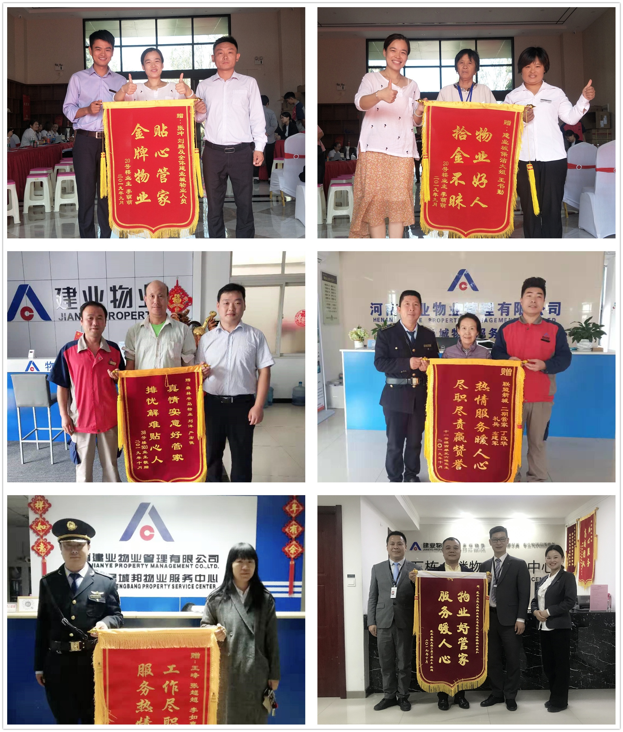 十月,秋陽杲杲,霜天紅葉。建業(yè)物業(yè)全體員工不僅持續(xù)地為業(yè)主打造舒適的人居環(huán)境,還積極主動(dòng)地為業(yè)主提供至誠服務(wù)。本月,我們收到拾金不昧、技術(shù)高超、服務(wù)熱情、助人為樂等好人好事共405例,其中,收到錦旗113面、感謝信146封、致電感謝及其他146起。