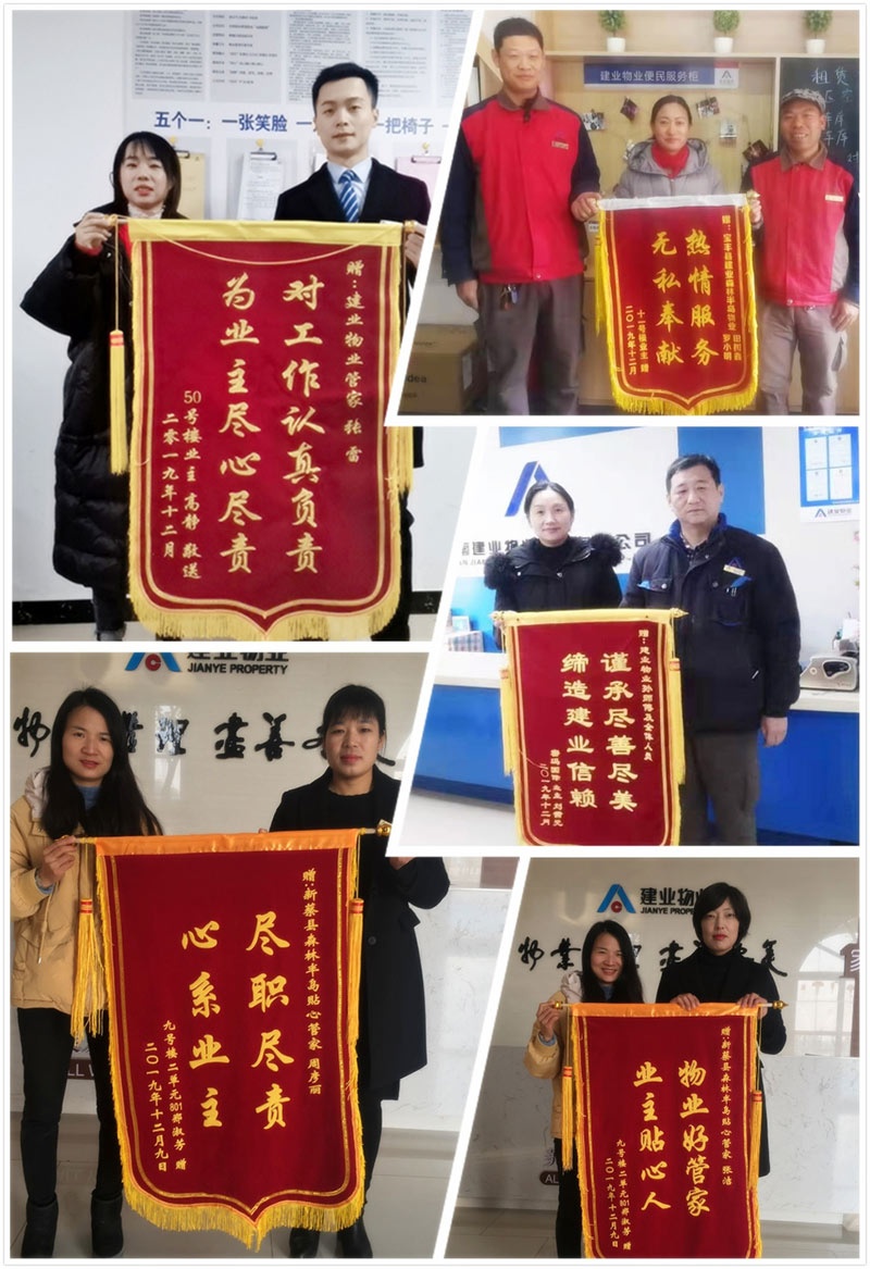 嚴寒十二月,寒風(fēng)刺骨。建業(yè)物業(yè)全體員工提供的暖心服務(wù)卻能抵御寒冬,讓業(yè)主感受到春天般的溫暖。本月,我們收到拾金不昧、技術(shù)高超、服務(wù)熱情、助人為樂等好人好事共405例,其中,收到錦旗113面、感謝信146封、致電感謝及其他形式的點贊146起。