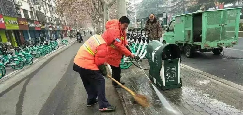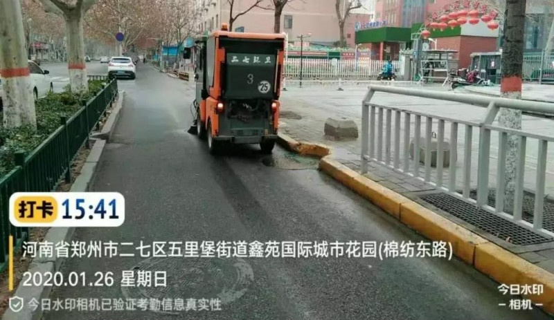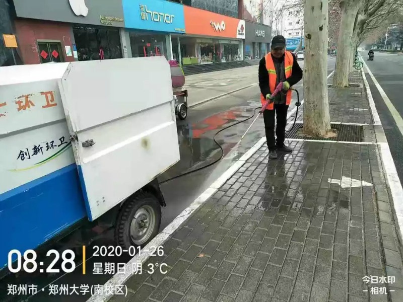 建業(yè)物業(yè)鄭州二七環(huán)衛(wèi)保潔春節(jié)期間每日出動各類環(huán)衛(wèi)車輛40余臺,清擦果皮箱380多個,沖刷油污道路50余處,清理落葉3噸左右,沖刷道牙15000多米,清理廣告30處左右,清理衛(wèi)生死角40余處……集中清理、清洗道路,保障城市的潔凈衛(wèi)生,減少細菌病毒滋生,為防止疫情的發(fā)生貢獻自己的力量。