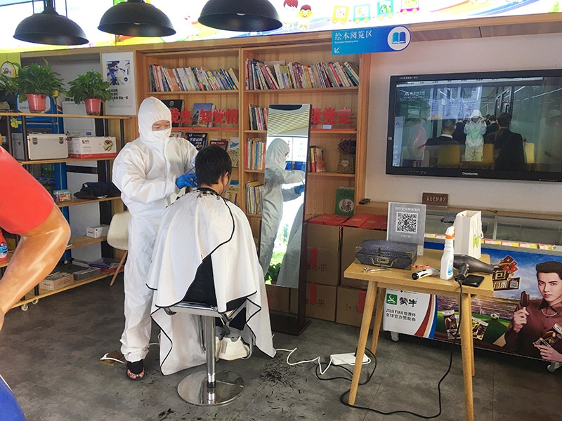 各個小區(qū)精心開辟活動場地,在活動開始前一天通知業(yè)主,并采取線上預約的方式,第二天按順序提前半小時通知業(yè)主到達指定場地,業(yè)主需要提前洗好頭發(fā),自帶濕毛巾,戴口罩。