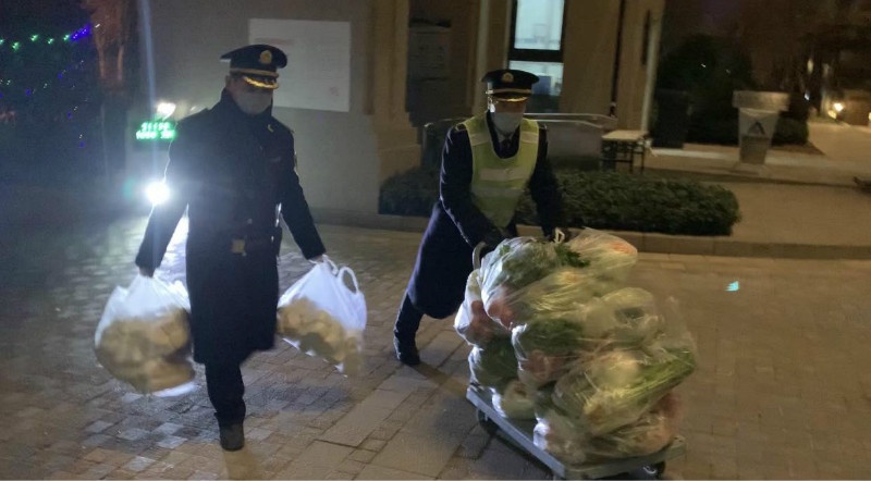 2月3日,綠色基地運送蔬菜的車輛在路上遇上層層管制,要到晚上十一點左右才能送到鄭州市建業(yè)花園里小區(qū)。想到有部分業(yè)主提到自己家中已沒有存糧,貼心管家劉夢娜、值班師傅弓寶峰和禮兵閆剛便一直等到蔬菜送達(dá),小跑著去核對、確認(rèn)菜品,并將分裝好的蔬菜連夜悄悄地掛在業(yè)主家門把手上。