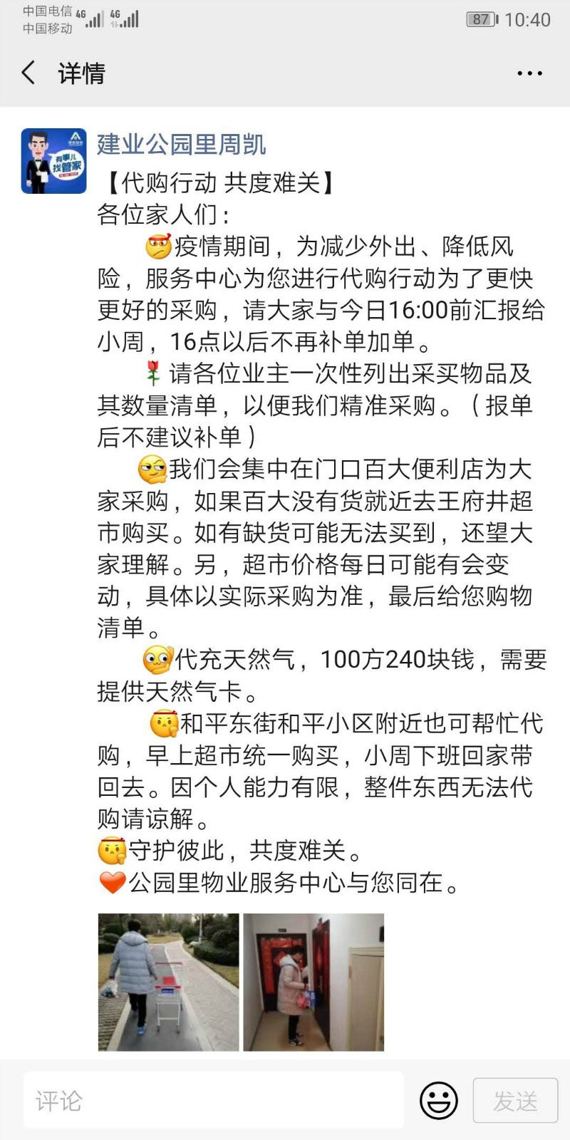 平輿建業(yè)城是一個剛交房三個月的新小區(qū),雖然入住率極低,但本著“服務標準不能低”的準則,毅然在全市范圍內(nèi)啟動了生活物資代購服務。