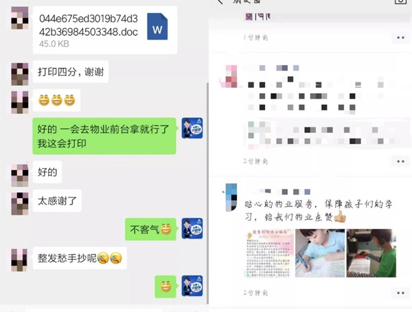 線上要上課,線下要做作業(yè),但是疫情期間打印店早已閉門休業(yè),面對各科老師布置的作業(yè),家長們齊齊上陣為孩子抄寫作業(yè)題目。建業(yè)物業(yè)敏銳的察覺到業(yè)主們的需求,立即推出打印作業(yè)服務(wù),減輕業(yè)主負(fù)擔(dān)。