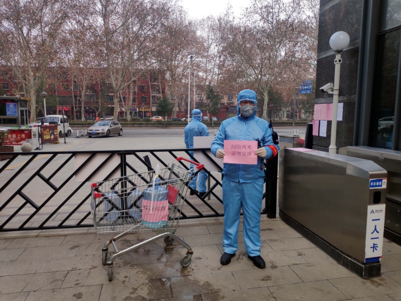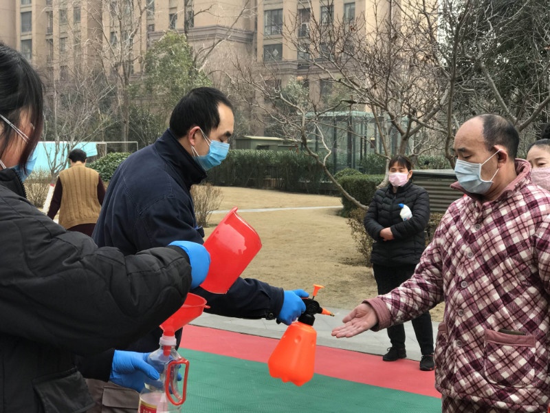 在建業(yè)物業(yè)社區(qū)免費發(fā)放消毒液