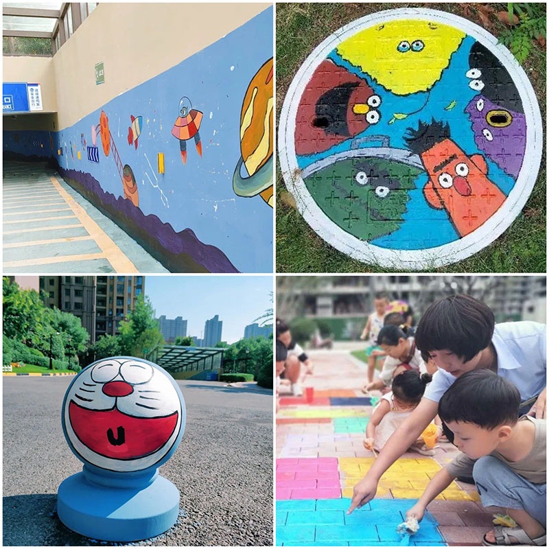 除了“綠茵行動(dòng)”為園區(qū)帶來(lái)的煥新景色,建業(yè)物業(yè)各個(gè)小區(qū)也開(kāi)展了彩繪園區(qū)的相關(guān)活動(dòng),在石墩、井蓋上繪出卡通人物;在路面、小橋上繪出彩虹、色塊、線(xiàn)條;在地下車(chē)庫(kù)的墻面繪出一幅風(fēng)景畫(huà)……每個(gè)小區(qū)都在創(chuàng)意,用色彩為園區(qū)增添活力,給孩子一個(gè)多彩的童年。在彩繪活動(dòng)過(guò)程中,不少業(yè)主帶著孩子參與其中,一起將園區(qū)打造成童年的樂(lè)園??粗⒆觽儗?zhuān)注又開(kāi)心的笑臉,不少業(yè)主紛紛拍攝記錄,將美好永遠(yuǎn)留存。