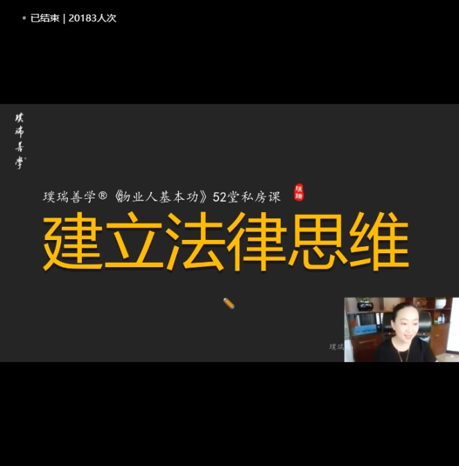 本次系列直播課程由建業(yè)新生活集團(tuán)助理總裁、建業(yè)物業(yè)總經(jīng)理溫婷講授,課程包括《物業(yè)人必備的六種法律思維》《物業(yè)管理法律關(guān)系》《業(yè)主的建筑物區(qū)分所有權(quán)》《物業(yè)服務(wù)合同》,課程安排貫穿9月。