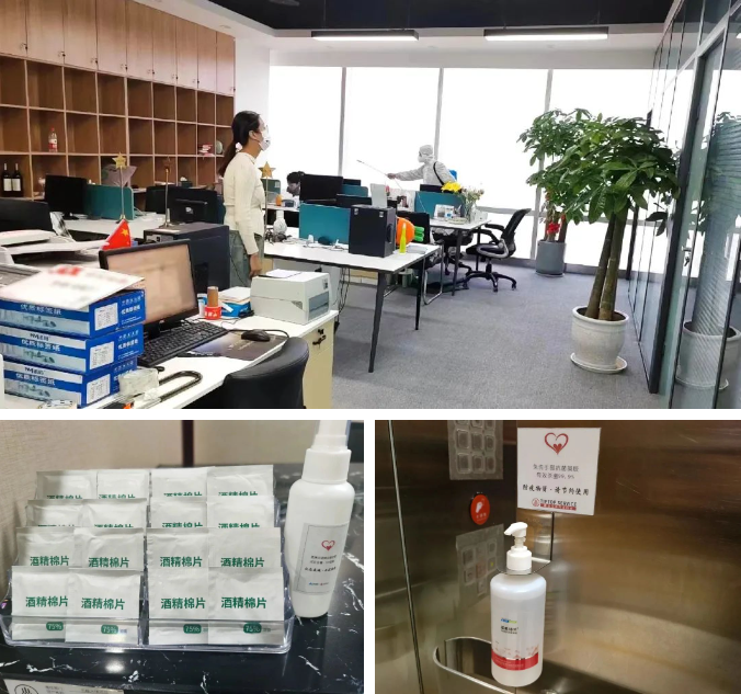 在明確復(fù)工時(shí)間后,建業(yè)物業(yè)迅速組織工作人員,對(duì)公共區(qū)域進(jìn)行全面消殺,并對(duì)電梯、客戶公司門把手、垃圾桶等區(qū)域進(jìn)行重點(diǎn)消毒。設(shè)置體溫監(jiān)測儀、更新場所碼,為即將到來的復(fù)工做好充分準(zhǔn)備。