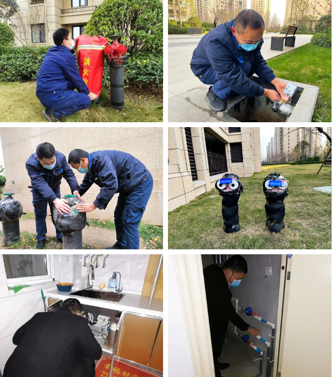 同樣穿上棉衣的還有園區(qū)里暴露在室外的設(shè)施設(shè)備,建業(yè)物業(yè)使用保暖防風(fēng)材料將水管、消防栓、水龍頭等用水設(shè)施包裹起來(lái),避免因降溫而影響正常使用。維修工們還積極入戶(hù)為業(yè)主排查水電故障,防止因天氣寒冷導(dǎo)致水管出現(xiàn)“跑冒滴漏”。