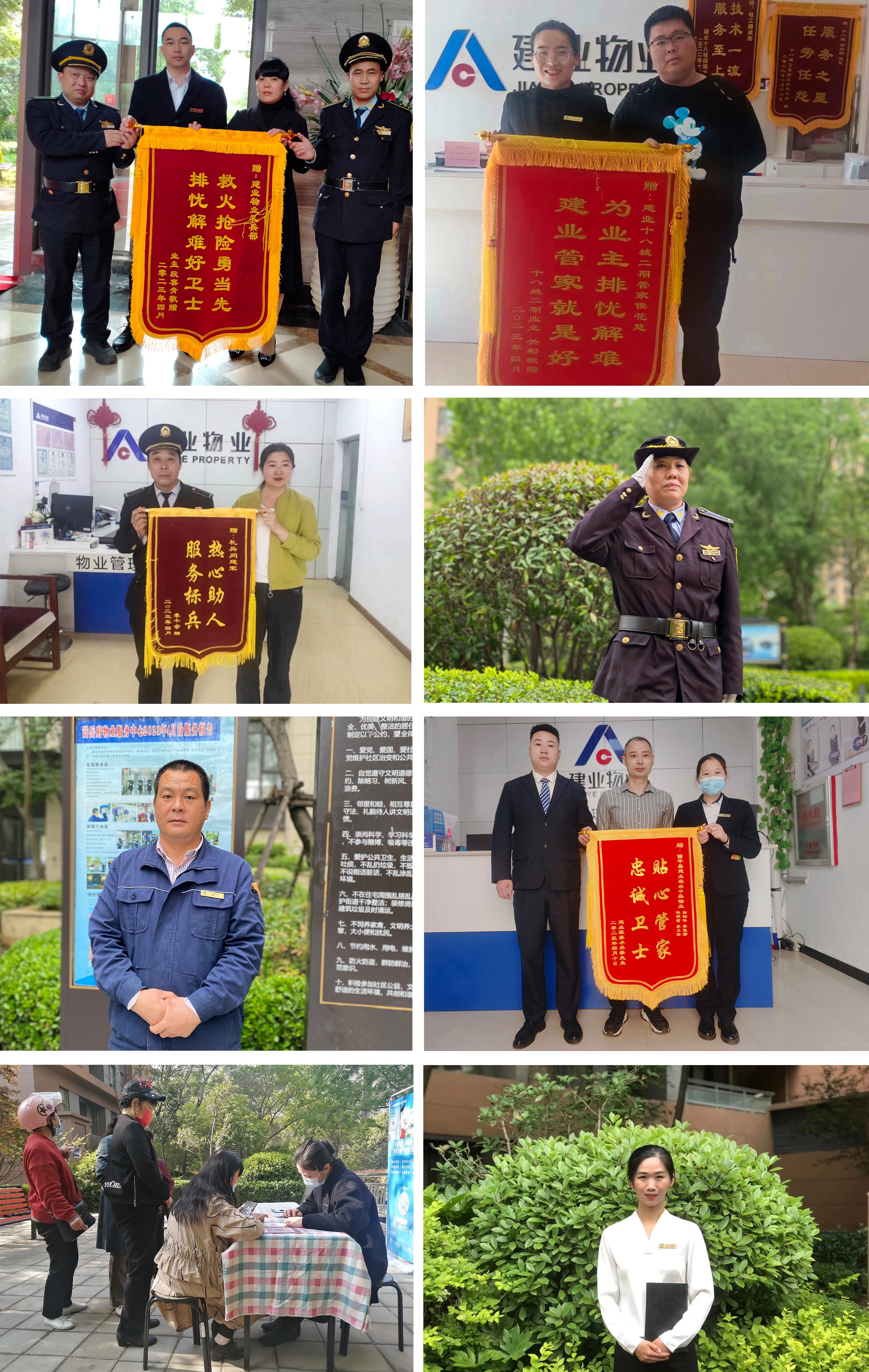 4月份,建業(yè)物業(yè)在管園區(qū)涌現(xiàn)出好人好事992件,其中收到錦旗224面、感謝信91封、其他致電表揚(yáng)等677次。