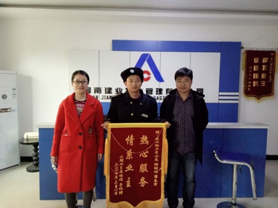 優(yōu)質(zhì)服務(wù) 業(yè)主點(diǎn)贊 ——建業(yè)物業(yè)2017年3月份好人好事通稿 三月,萬物復(fù)蘇、草長(zhǎng)鶯飛,在這春暖花開之際,建業(yè)物業(yè)全體員工不僅持續(xù)為業(yè)主打造舒適的人居環(huán)境,還積極主動(dòng)為業(yè)主提供幫助,此間涌現(xiàn)了一件件感人至深的好人好事。3月,我們收到拾金不昧、技術(shù)高超、服務(wù)熱情、智勇擒賊、助人為樂等多種類型的好人好事55例,其中錦旗12例,感謝信21例,電話表?yè)P(yáng)22例。 鏡頭一: 3月15日凌晨1:30,濟(jì)源·建業(yè)壹號(hào)城邦29號(hào)樓一位女業(yè)主向物業(yè)服務(wù)中心緊急求助,非常焦慮地說自己肚子疼,孩子可能即將臨產(chǎn),而丈夫在外地上班,她獨(dú)自一人在家。 情況緊急,為節(jié)約時(shí)間,接到求助后,物業(yè)值班人員立即撥打120,巡邏禮兵李軍波